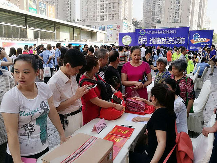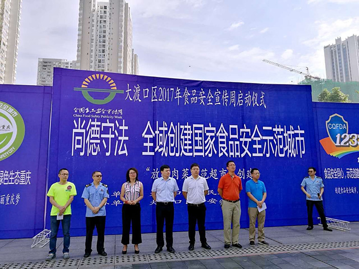 7月10日上午,大渡口區在九宮廟步行街組織開展以“尚德守法”“全域創建國家食品安全示范城市”為主題,暨食品安全宣傳周宣傳的廣場宣傳活動。區食品藥品監督管理分局、區衛生計生監督執法局、區疾控中心、區食品銷售商戶代表參加了活動。區政府副區長毛偉出席此次活動。紅九九食品公司也受邀參與了現場的各項活動。