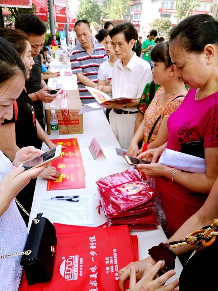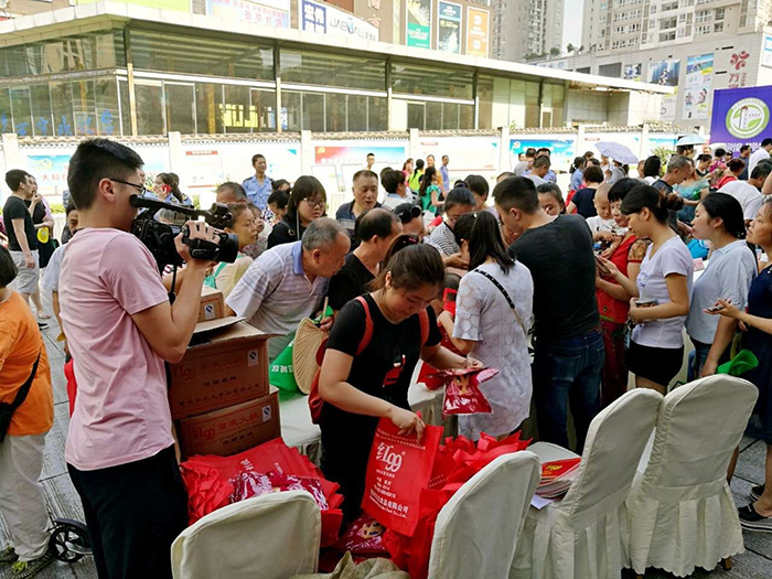 在活動現場,重慶紅九九食品有限公司免費發放大量的紅99火鍋底料及濃縮調料、圍裙、環保袋,現場群眾爭相領取。