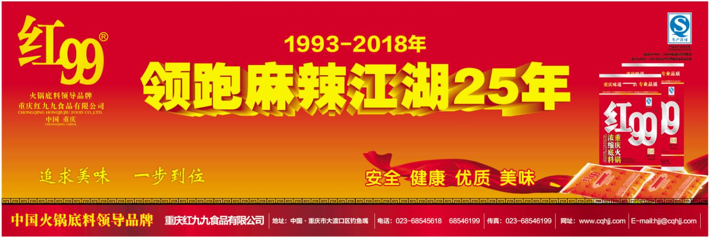 25個年頭,足以讓青春流逝,歲月滄桑,掌門人黃萬明已闊別翩翩壯年步入矍鑠花甲,但麻辣英雄壯志未減,對紅九九火鍋事業來說,卻正是如日中天,發展穩健而蓬勃。25年的風雨浸潤,紅九九正以中國火鍋底料的領導品牌昂首闊步,讓人豎起大拇指嘖嘖稱道。